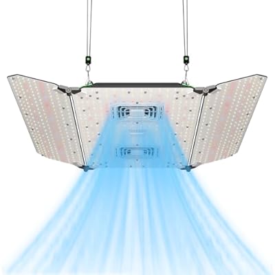 A 400-watt tunable spectrum LED grow light with integrated circulation fan and app compatibility. It delivers adjustable full-spectrum lighting using high-quality LEDs that support all plant growth stages (including UVA, deep red, and far red), helping improve photosynthesis, flowering, and yields. The built-in fan optimizes airflow throughout the canopy, balancing temperature and humidity. The light integrates with the VIVOSUN GrowHub Controller/E42A/E25 and app (sold separately) for automated scheduling and spectrum control. Its unique design also ensures a long lifespan (over 50,000 hours) and uniform light and air distribution across the grow area, covering roughly a 4 ft × 4 ft footprint.
